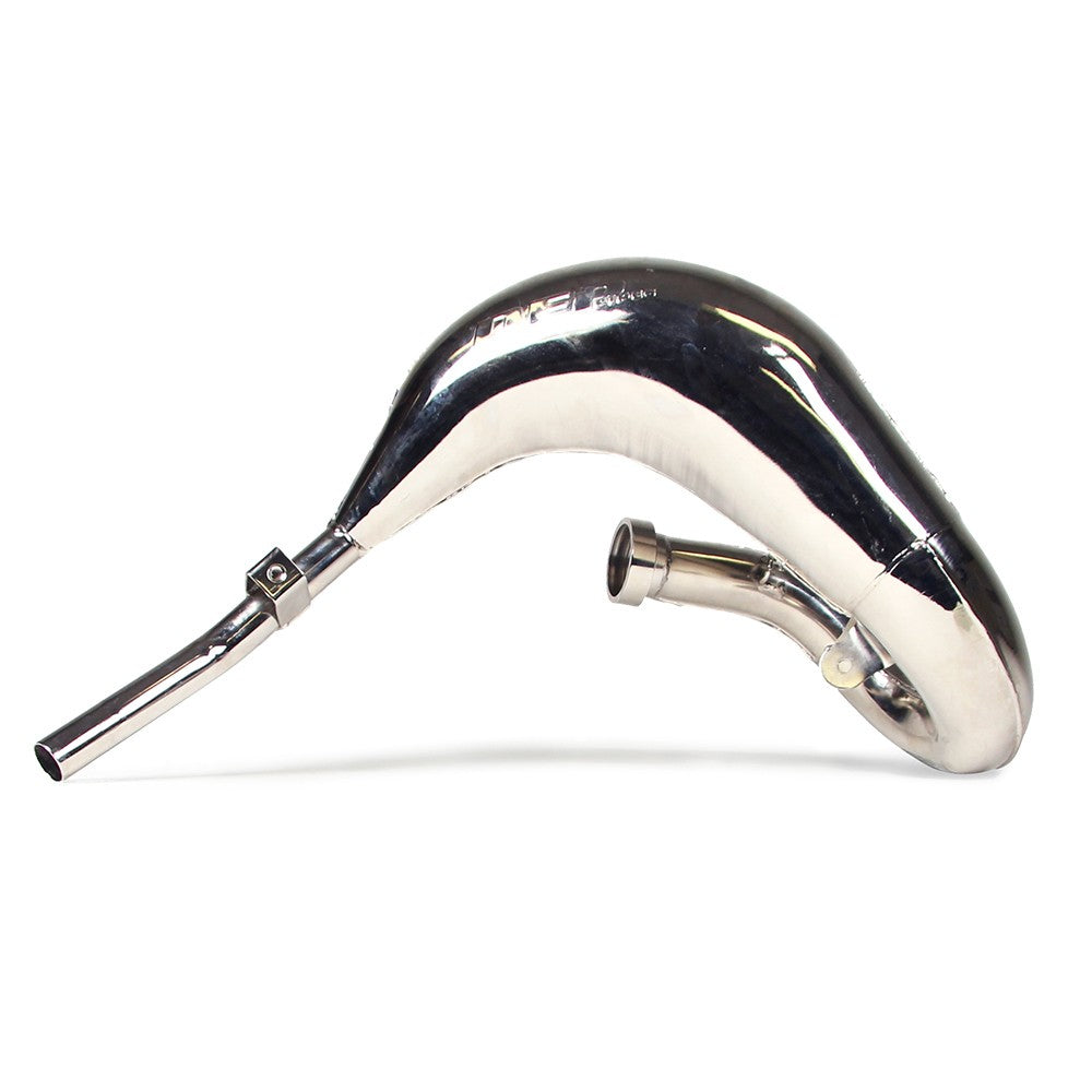 DEP 2 stroke pipes are produced from high quality CR1 grade, mild steel material. Ranging from 0.9-1.2mm, depending on the model and purpose. The 2 stroke stampings are produced through our own deep drawer process, using CNC cylinder mounts, in-house laser cut mounting brackets and fabricated with high quality TIG and MIG welding. All models are available in the bare metal factory finish and nickel finish. Our 2 stroke pipes have been designed to improve performance over the OE pipe with in-house DYNO and track testing. Expansion Chamber "Must use with DEP Silencer DEPT2812"