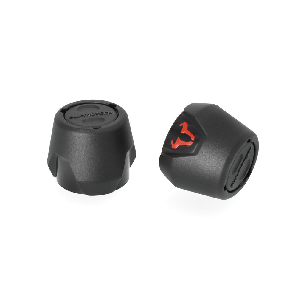 Slider set for front axle The front axle crash pads made of abrasion-resistant plastic protect the drive shaft from damage in the event of a fall. The smooth surface also provides excellent sliding properties. The polished bull logo in red adds a visual highlight to your motorcycle. Protection for the fork Discreet slider pad made from abrasion-resistant polyamide Robust core made of fiberglass-reinforced plastic (PA6 GF30) High mechanical damping capacity due to TPU coating Good sliding properties and emergency operating features Matte black surface with polished bull logo in red Easy mounting with axle thread and bike-specific spacers Included in delivery 2 x Slider set for front axle Mounting instructions Mounting material Details Material: PA6 Ertalon Color: black Total Weight: appr. 0,3 kg / appr. 0.7 lb
