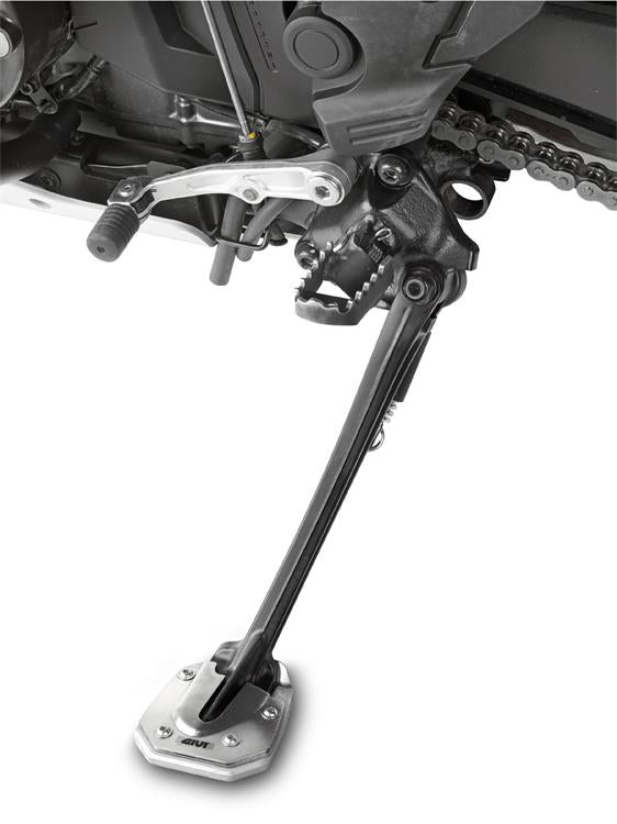Givi have a new range of side stand supports made from aluminum and stainless steel that widen the surface support area of the original side stand. They are easy to fit and are available for the popular adventure and touring bikes.