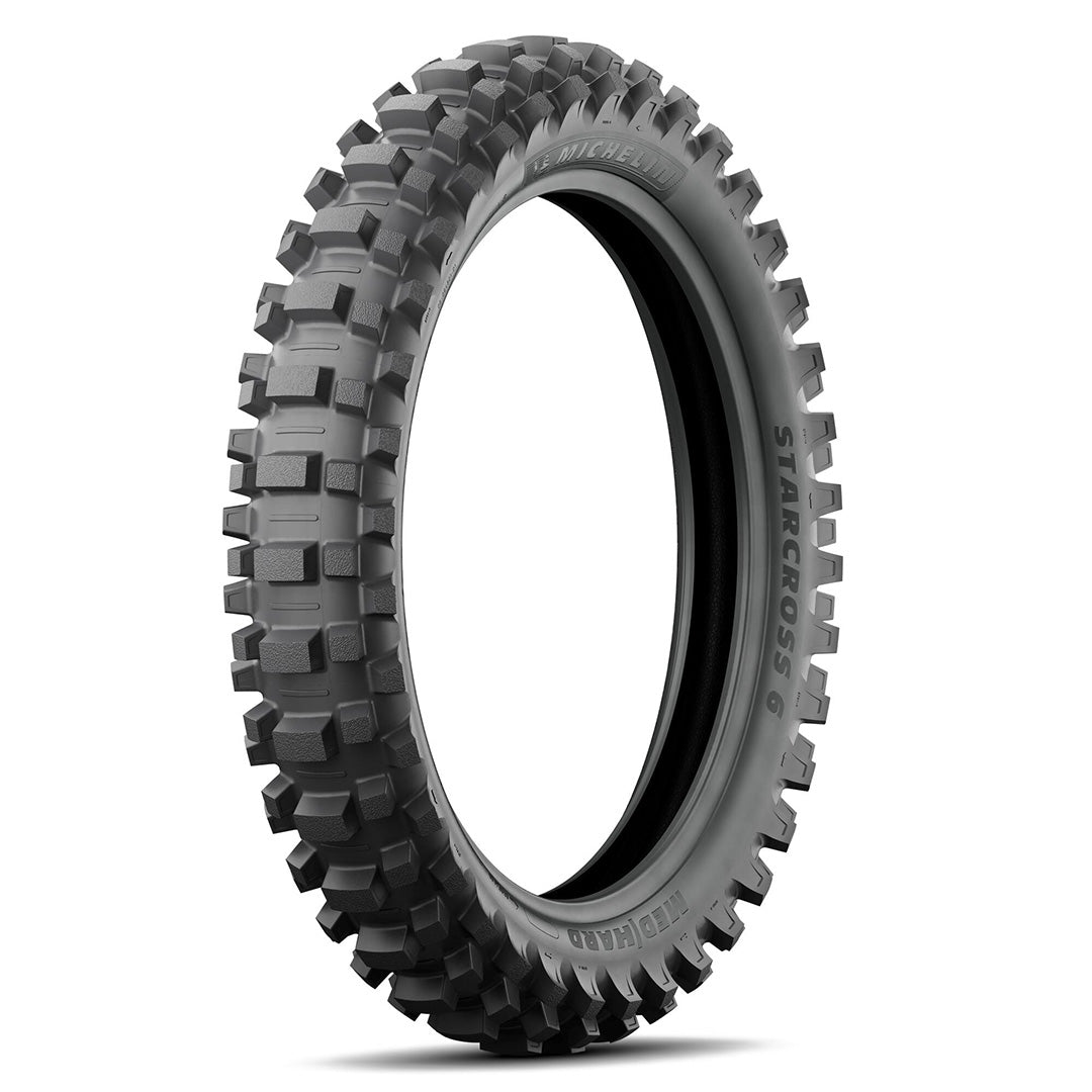 Adaptive design provides +7% of grip and control on soft to intermediate terrain when tyre is new. MICHELIN StarCross 6 is the 1st motocross tyre with Silica technology that maintains the tread blocks ingood shape (+19% of grip when tyre is worn). MICHELIN StarCross 6 Medium Hard was developed alongside pro riders and is ridden in World and National championships.