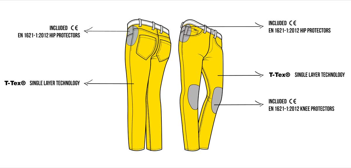 Perfect for everyday wear, these jeans feel like standard denim, but come equipped with removable knee and hip protection. The knee protectors are also adjustable to suit individual leg lengths. These jeans are perfect for your regular commute and comfy enough to wear all day.