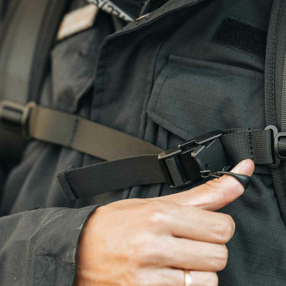 Daily WP backpack With the Daily WP, we have developed a high-quality motorcycle backpack that can meet all the challenges of everyday motorcycling. Its practical features ensure that your belongings are transported safely, comfortably, and dry. Perfect for commuting or long weekend trips. The waterproof main compartment with roll-top closure offers 22 liters of storage space, and thanks to the robust TPU material, your belongings remain protected even in heavy rain. You can easily store a 15-inch notebook and a tablet in the removable laptop compartment. The spacious front pocket with integrated key attachment offers plenty of space for smaller items. The padded carrying straps are adjustable in length, while the removable hip belt and the ergonomically shaped back padding ensure a high level of comfort. Thanks to a magnetic click closure, the chest strap can be operated even with the helmet visor closed. With the compression straps on the front, you can ensure that the Daily WP always sits firmly on your body, even with little load. Reflective details improve your visibility in low-light conditions. Waterproof main compartment made of TPU material with roll-top closure Tie-down straps on the front for compact luggage transport MOLLE attachment for mounting accessory bags (e.g., PRO Plus WP) Chest strap with magnetic click closure Padded carrying straps, adjustable in length Removable hip belt Ergonomically shaped back padding Reflective features on the front and sides Additional reflective detail on the backpack straps Reinforced carrying handle